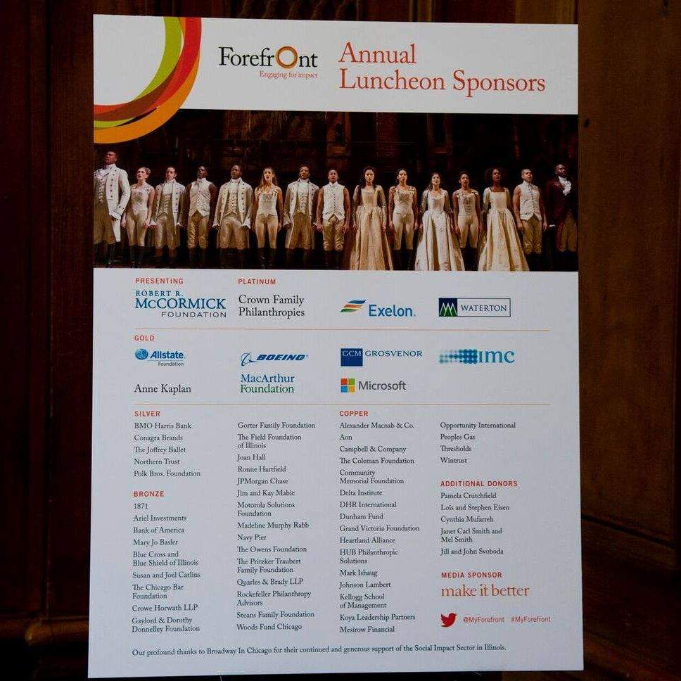 At the time, Hamilton was the hottest show in America. When the production came to Chicago, Forefront’s membership of nonprofits and grantmakers was already buzzing. The goal became clear: secure the cast, transform the luncheon into a cultural event, and use the spotlight to elevate Forefront’s advocacy for civic engagement and racial equity.
